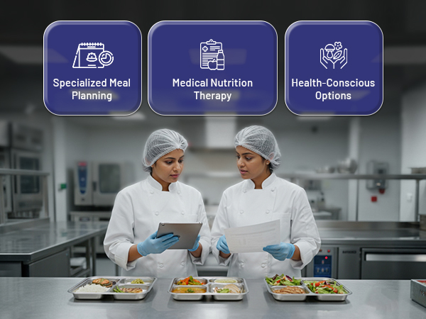 We design and execute meal plans that go beyond taste to actively support health and well-being. Our culinary experts and dietitians collaborate to cater to a wide array of specific health and dietary requirements.